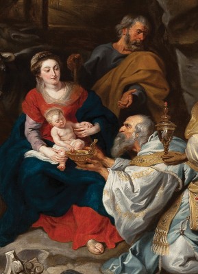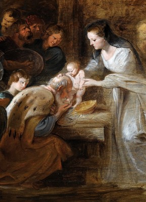※ 본 작품은 17세기 플랑드르 바로크 회화가 발전시키던 역동적 제작 관행 속에서 동방 박사의 경배를 장엄한 서사 이전에 신학적 핵심으로 응축해 제시하는 성화에 해당한다. 루벤스는 장식과 설명을 과감히 배제하고 즉흥적인 붓질과 밀도 높은 명암을 통해 이방인의 겸손한 경배와 성육신의 신비를 한 순간의 동작에 집중시키며 경배를 완성된 의례가 아니라 이후 연작으로 확장될 감정과 구성의 출발점으로 시각화한다.