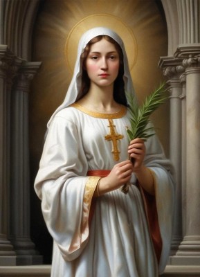 작가 : 미상 연대 : 19세기 (추정) 소장 : 미상 기법·시대 : 유채, 신고전주의적 아카데믹 양식 유형 : 반신 성인 초상화 특징 : • 화면 중앙에 정면으로 배치된 인물은 좌우 대칭 구조 속에서 안정된 균형을 형성한다. • 부드럽게 확산되는 황금빛 후광은 강한 대비 없이 내적 고요를 강조한다. • 흰 의복의 단순한 주름과 절제된 색채는 감정의 과장 없이 정결한 상태를 드러낸다. • 손에 쥔 종려나무 가지는 수직 축을 이루며, 순교의 의미를 조용히 화면 중심에 놓는다. ※ 이 작품은 19세기 아카데믹 회화의 전통 속에서 제작된 것으로 보이며, 르네상스적 이상미와 신고전주의의 질서를 계승하여 인물을 시간과 감정의 동요로부터 분리된 상태로 제시한다. 작가는 극적인 순교 장면 대신 정적인 초상 형식을 선택함으로써, 성녀를 사건의 주인공이 아니라 이미 완성된 신앙의 상태로 드러내고자 했다. 이러한 선택은 신앙을 고통의 순간이 아니라 지속적으로 유지되는 내적 질서로 이해하려는 의도를 반영한다. 화면의 절제된 빛과 균형 잡힌 구도, 최소화된 상징은 신앙이 외적 과시가 아닌 내면의 고요 속에서 형성된다는 점을 강조하며, 종려나무는 그 고요가 결국 순교라는 결실로 이어졌음을 조용히 증언한다.