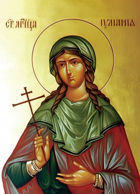※ 이 작품은 중세 비잔틴–러시아 아이콘 전통이 형성되던 12–13세기의 양식을 따르며, 입체적 공간이나 사실적 묘사보다 영적 현존을 강조하는 시기의 특징을 보여준다. 작가는 정면성, 평면성, 금빛 배경을 통해 성녀 율리아나를 시간 속 인물이 아닌 영원한 차원에 속한 존재로 제시하고자 하였다. 이러한 표현은 신앙을 사건의 재현이 아니라 현재적으로 참여되는 상태로 드러내며, 십자가와 손짓은 순교의 기억을 넘어 지속되는 신앙의 고백과 내적 일치를 상징한다.
