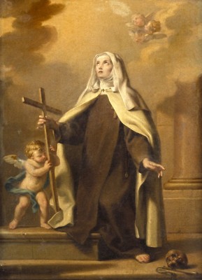 상징 : 십자가(회개와 사랑), 묵주(기도의 지속), 눈물(참회와 정화), 거친 옷(속죄와 절제)