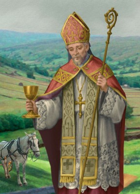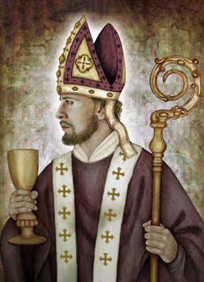 상징 : 주교 지팡이(목자적 권위), 책(신학과 가르침), 성배(성체 신심)