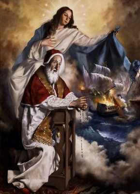• 1571년 레판토 해전 당시 묵주기도를 독려하며 그리스도교 연합을 위해 기도함