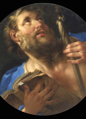 작가 : 샤를 프랑수아 포에르송 (Charles François Poerson) 연대 : 17세기 후반 추정 소장 : 개인 소장(Private Collection) 기법·시대 : 유채, 프랑스 바로크 유형 : 사도 단독상(원형 화면 구성) 특징 : • 원형 화면 안에 인물의 상반신을 크게 배치하여 시선을 집중시킨다. • 강한 명암 대비가 얼굴과 손, 책의 질감을 생생하게 드러낸다. • 한 손에는 두꺼운 책을 끌어안고, 다른 손에는 곤봉을 쥐어 사도와 순교자의 상징을 동시에 제시한다. • 위로 향한 시선과 벌어진 입술은 간절한 기도와 내적 고양을 암시한다. ※ 이 작품은 프랑스 바로크의 감정 표현과 극적인 조명을 통해 성인의 내적 열정을 강조한다. 포에르송은 원형 화면 구성을 활용하여 인물을 화면 중앙에 밀착시키고, 빛을 통해 얼굴과 손의 표정을 강조함으로써 신앙의 긴장과 고양을 시각화한다. 책을 가슴에 끌어안은 자세는 교회의 가르침에 대한 충실함을, 곤봉은 순교의 정체성을 명확히 드러낸다. 이 성화에서 신앙은 관조적 침묵을 넘어, 하느님을 향해 전 존재를 들어 올리는 열망의 태도로 제시된다.