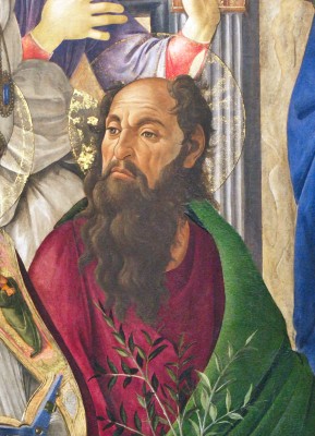 ※ 이 작품은 1487년 르네상스 피렌체 회화의 특징을 반영하여, 성인들을 조화롭고 질서 있는 인간적 공간 안에 배치한다. 보티첼리는 중세적 상징성에서 벗어나 인물 간의 관계와 내적 교류를 강조하는 구성을 통해, 신앙을 추상적 상징이 아니라 인간적 경험 속에서 드러나는 것으로 표현한다. 성 바르나바는 다른 성인들과 함께 화면 안에서 서로를 바라보고 연결되며, 이는 신앙이 개인의 고립된 행위가 아니라 공동체적 관계 속에서 형성됨을 시사한다. 이 성화는 15세기 르네상스의 인간 중심적 시각과 신앙의 조화를 보여주며, 하느님의 은총이 인간의 이성과 질서 속에서도 드러날 수 있음을 나타낸다.