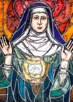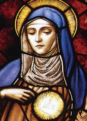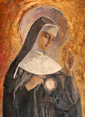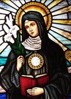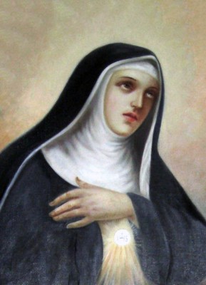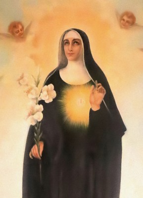 상징 : 십자가(고통의 수용), 성체(그리스도와의 일치), 수도복(겸손과 봉헌), 백합(순결과 정결)