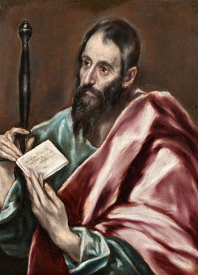 ※ 이 작품은 엘 그레코 특유의 매너리즘 양식을 통해 성 바오로를 현실적 인물의 초상이 아니라 강한 영적 긴장 속에 있는 사도로 제시한다. 작가는 길게 늘어진 인체와 소용돌이치는 붉은 망토, 깊은 시선을 통해 인물의 내면을 강조하며, 서간과 칼이라는 도상을 통해 가르침과 순교라는 사도적 사명을 결합한다. 이 성화에서 바오로는 역사적 인물이라기보다 하느님의 말씀을 전하고 그 진리를 위해 자신을 내어놓은 증인으로 나타나며, 신앙은 인간의 내면을 사로잡는 영적 부름과 그에 대한 응답의 긴장 속에서 표현된다.