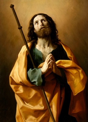 ※ 이 작품은 후기 바로크 회화에서 나타나는 렘브란트 특유의 명암 대비와 심리적 사실주의를 보여준다. 작가는 사도를 영웅적 인물로 이상화하지 않고, 세월과 고뇌가 새겨진 인간의 얼굴로 제시한다. 빛은 외부에서 쏟아지는 계시가 아니라, 어둠 속에서 조용히 떠오르는 내면의 집중을 형성한다. 이 성화에서 신앙은 기적의 순간이 아니라 긴 여정 끝에 다다른 성찰의 자리로 표현되며, 순교로 기억되는 사도는 여기서 고요한 기도의 사람으로 재해석된다.