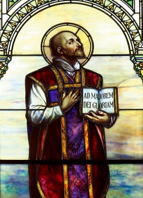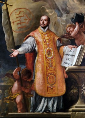상징 : IHS(그리스도 중심성), 《영신수련》(식별과 내적 훈련), 지도·지구본(선교와 파견), 검(회심과 방향 전환)