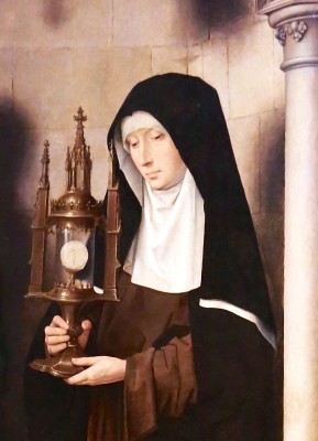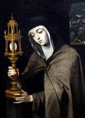• 사라센 침입 시 성체를 들고 기도하여 수도원을 보호했다는 전승이 전해짐
