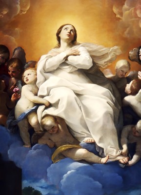 ※ 이 작품은 17세기 바로크 회화에서 성모 승천 교의를 시각적으로 구현한 대표적 유형으로, 인간의 육신이 하느님의 영광 안으로 들어 올려지는 순간을 강조하는 미술사적 의미를 지닌다. 귀도 레니는 부드러운 명암과 이상화된 인체 표현을 통해 성모를 지상과 구별된 존재로 묘사하고, 상향하는 구도와 빛의 확산을 통해 하늘로 향하는 영적 운동을 강조하려는 의도를 드러낸다. 특히 천사들과 구름 위에서 떠오르는 모습은 단순한 이동이 아닌 영광스러운 변화(transfiguratio)를 시각화한 것으로 이해된다. 이 성화는 성모 마리아가 원죄 없이 잉태되어 생애를 마친 후 육신과 영혼이 함께 하늘에 올려졌다는 교회의 신앙을 표현하며, 인간이 하느님의 은총 안에서 궁극적으로 도달하게 될 영광의 완성을 상징적으로 드러낸다.