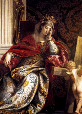상징 : 십자가(참된 십자가 전승), 왕관(황실 신분), 성지 성당 모형, 못·성유물