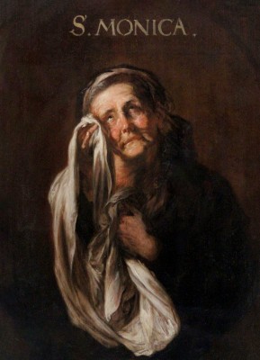 작가 : 미하엘 빌만(Michael Willmann) 연대 : 17세기 후반 소장 : 브로츠와프 국립미술관(National Museum in Wrocław), 폴란드 기법·시대 : 유화, 바로크 시대 유형 : 성인 단독상(기도하는 성녀 도상) 특징 : • 성녀 모니카는 눈물을 훔치는 순간으로 포착되어 평생 이어진 눈물의 기도를 직접적으로 드러낸다. • 어두운 배경 속에서 얼굴과 손, 흰 천만을 강조한 명암 대비는 바로크 회화 특유의 감정 집중 효과를 만든다. • 위로 향한 시선은 인간적 슬픔을 넘어 하느님께 향한 신뢰와 간청을 상징한다. • 소박한 복식과 노년의 얼굴 표현은 이상화된 성인상보다 신앙의 진실성과 고통의 깊이를 강조한다. ※ 이 작품은 바로크 미술의 감정적 표현과 강한 명암 대비를 통해 성녀 모니카의 내적 고통과 신앙을 극적으로 드러내는 성화이다. 미술사적으로 바로크 회화는 인간의 감정과 신앙 체험을 생생하게 표현하는 데 특징이 있으며, 작가는 어두운 배경 속에서 눈물과 손의 움직임을 강조하여 관람자의 시선을 인물의 내면에 집중시키려 한다. 작가의 의도는 모니카의 삶을 단순한 교훈적 상징이 아니라 실제 인간의 고통과 간절한 기도의 체험으로 드러내는 데 있으며, 눈물을 훔치는 순간을 포착함으로써 기도의 지속성과 인내를 표현한다. 신앙적 측면에서 이 성화는 아들 성 아우구스티노의 회심을 위해 평생 기도한 어머니의 믿음을 묵상하게 하며, 인간의 눈물 속에서도 하느님을 향한 희망과 신뢰가 살아 있음을 보여 주는 영적 메시지를 전한다.