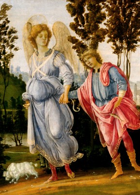 • 「토비트기」의 여정을 배경으로 대천사 라파엘이 소년 토비아를 인도하는 장면을 이상화된 르네상스 양식으로 묘사한다.
