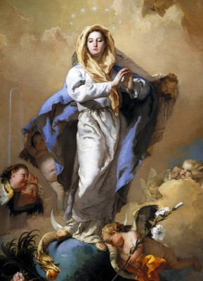 상징 : 해를 두른 여인(은총), 달(변하지 않는 기초), 뱀과 발꿈치(원죄의 극복), 별의 관(선택됨)