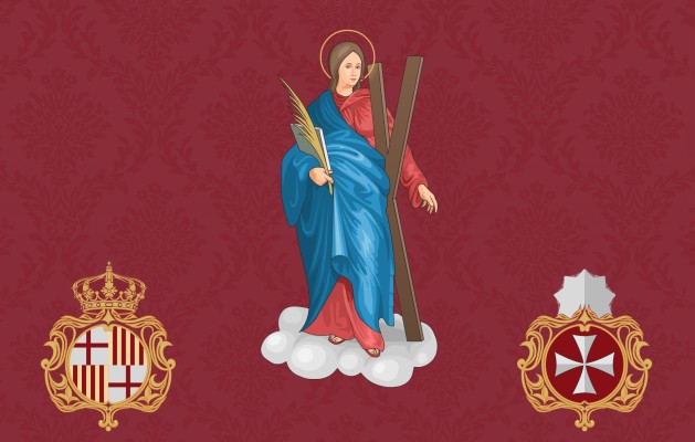 ※ 본 상징기는 중세 이래 이어진 성인 공경 전통 속에서 성녀 에울라리아를 도시의 수호 성인으로 제시하는 상징적 성화에 해당한다. 작가는 종려가지와 형틀, 그리고 도시 문장을 결합한 도상을 통해 성녀의 순교와 바르셀로나 공동체의 신앙적 정체성을 동시에 표현하고자 하였으며, 이러한 표현은 성인이 도시와 시민을 보호하는 영적 수호자로 기억된다는 신앙적 의미를 드러낸다.