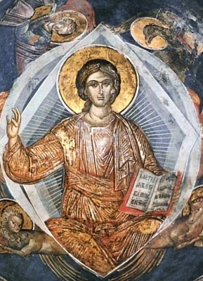 ※ 이 작품은 14세기 비잔틴 후기 프레스코 전통 속에서 제작된 것으로, 장식성과 상징성이 유지되면서도 보다 인간적인 얼굴 표현이 강조되던 시기의 특징을 반영한다. 작가는 정면성과 대칭적 구도를 통해 그리스도를 영원한 질서의 중심으로 제시하면서, 동시에 부드러운 표정과 인체 비례를 통해 신성과 인간성이 함께 드러나도록 의도하였다. 이러한 표현은 신앙을 초월적 존재에 대한 경외와 더불어, 인간과 관계 맺는 하느님의 현존으로 이해하도록 이끈다.