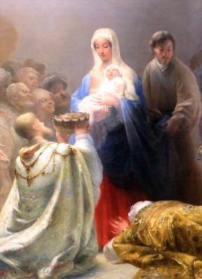 ※ 본 작품은 19세기 포르투갈 후기 신고전주의에서 낭만주의로 이행하던 종교 회화의 흐름 속에서 동방 박사의 경배를 극적 사건이 아니라 내적 묵상의 장면으로 전환해 제시하는 성화에 해당한다. 세케이라는 강한 명암 대비와 서사적 긴장을 배제하고 부드러운 빛과 감성적 색채의 통일을 통해 성육신의 신비를 환시적 현존으로 시각화하며 전통적 도상을 계승하면서도 신앙을 외적 의례가 아닌 조용한 숭배와 내면화된 응답으로 규정하는 19세기 종교 회화의 감수성을 분명히 드러낸다.