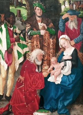 ※ 본 작품은 16세기 초 북유럽 르네상스 회화가 지닌 사실적 관찰과 상징적 사고의 결합 속에서 동방 박사의 경배를 보편적 구원의 질서가 가시화되는 장면으로 제시하는 성화에 해당한다. 한스 발둥 그리엔은 전통적인 도상 구조를 유지하면서도 강렬한 색채 대비와 개성적인 인물 표현을 통해 경배를 단순한 전례적 행위가 아니라 새로운 세계 인식과 신학적 전환이 교차하는 순간으로 규정하며 구원의 메시지가 특정 민족이나 계층을 넘어 확장됨을 시각적으로 분명히 드러낸다.