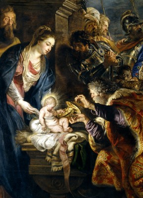 ※ 본 작품은 17세기 플랑드르 바로크 회화가 반종교개혁 시기에 요구한 장엄하고 공개적인 신앙 고백의 형식 속에서 동방 박사의 경배를 구원 역사 안의 결정적 계시 사건으로 제시하는 성화에 해당한다. 루벤스는 풍부한 색채와 역동적인 움직임을 통해 세속적 부와 권위가 성육신한 그리스도 앞에서 완전히 낮아지는 순간을 극적으로 시각화하며 경배를 개인적 신심의 표현이 아니라 교회와 세계가 함께 목도하는 공적 신앙 행위로 규정한다.
