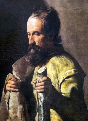 작가 : 후세페 데 리베라 (Jusepe de Ribera) 연대 : 1630년대 추정 소장 : 마드리드 프라도 미술관(Museo Nacional del Prado) 기법·시대 : 유채, 스페인 바로크(테네브리즘) 유형 : 사도 단독상 특징 : • 짙은 어둠 속에서 얼굴과 손만이 부각되는 강한 명암 대비를 보인다. • 인물은 단순한 어두운 의복을 입고 있으며, 장식적 요소를 배제하였다. • 한 손은 가슴에 얹혀 있고, 다른 손은 곤봉을 단단히 쥐어 순교의 상징을 제시한다. • 거친 피부 표현과 섬세한 빛 처리는 육체적 현실감을 강조한다. ※ 이 작품은 리베라 특유의 테네브리즘을 통해 성인을 이상화된 존재가 아니라 현실의 인간으로 제시한다는 점에서 스페인 바로크의 특징을 보여준다. 작가는 극적인 사건을 묘사하지 않고, 어둠 속에서 떠오르는 얼굴과 손을 통해 내적 결단의 순간을 응축한다. 곤봉은 순교의 표지로 간결하게 제시되며, 장식이 배제된 화면은 인물의 표정과 빛의 방향에 시선을 집중시킨다. 이 성화에서 신앙은 영광의 광휘가 아니라, 고난을 받아들이는 인간적 침묵과 책임의 태도로 형성된다.