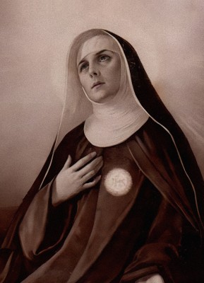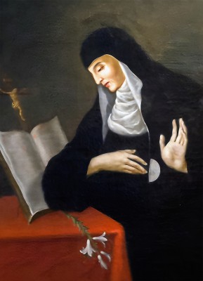 상징 : 십자가(고통의 수용), 성체(그리스도와의 일치), 수도복(겸손과 봉헌), 백합(순결과 정결)