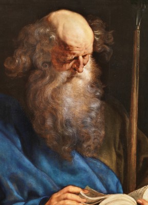 • 긴 흰 수염과 깊은 표정은 장년 사도의 권위와 삶의 경험을 강조한다.