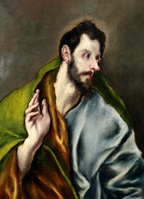 ※ 이 작품은 엘 그레코가 후기 매너리즘의 형식적 왜곡을 통해 사도를 단순한 역사적 인물이 아니라 영적 존재로 재구성한 사례이다. 길게 늘어진 신체와 비현실적 비례는 자연의 재현을 넘어서 초월을 향한 긴장을 시각화하며, 어두운 배경 속에서 떠오르는 얼굴과 손은 신앙의 내적 각성을 상징한다. 엘 그레코는 토마스를 ‘의심의 순간’이 아니라 이미 고백에 이른 사도의 모습으로 제시하며, 강한 명암과 신비로운 색채를 통해 신앙을 감각적 체험이 아니라 영적 응시의 상태로 표현한다. 이 성화에서 토마스는 상처를 만지는 인물이 아니라, 내면에서 확인한 진리를 전하는 증인의 형상으로 제시되며, 신앙은 육체적 확인을 넘어 빛을 향해 기울어진 영혼의 자세로 드러난다.