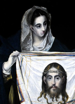 ※ 엘 그레코는 인체의 비례를 의도적으로 늘이고 형태를 세속적 현실에서 분리함으로써, 성녀의 행위를 역사적 사건이 아니라 영적 현현의 차원으로 끌어올린다. 베로니카는 관람자를 향해 직접 시선을 두지 않고, 수건 위의 성면을 제시하는 매개자로 서 있다. 어둠 속에서 떠오르는 얼굴과 성면은 서로 다른 차원의 빛을 형성하며, 신앙이 감각적 사실을 넘어 내적 계시로 전환되는 과정을 시각화한다. 이 작품에서 자비의 행위는 기억의 보존을 넘어, 인간과 신적 얼굴이 마주하는 신비의 순간으로 형상화된다.