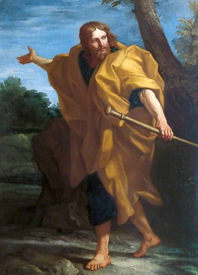 ※ 이 작품은 로마 바로크 후기의 고전주의적 안정성과 이상화된 인체 비례를 보여준다. 카를로 마라타는 격렬한 명암 대비보다 균형 잡힌 구도와 부드러운 색조를 통해 사도를 장엄하면서도 절제된 인물로 제시한다. 팔의 확장된 제스처와 전진하는 발걸음은 복음을 전하는 사도의 사명을 시각적으로 구체화하며, 신앙을 내면의 침묵이 아니라 세상을 향해 나아가는 능동적 행위로 표현한다. 이 성화에서 성 야고보는 순교의 순간이 아닌 ‘길 위에 선 인물’로 재현되며, 신앙은 여정 속에서 몸으로 감당하는 선택으로 제시된다.