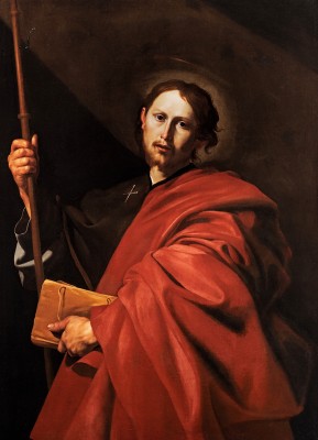 ※ 이 작품은 초기 바로크 시기의 카라바조주의 영향을 강하게 보여준다. 리베라는 빛과 어둠의 극적 대비를 통해 사도를 초월적 존재가 아닌, 현실의 무게를 지닌 인간으로 제시한다. 붉은 망토는 순교의 암시이자 사도의 열정을 상징하며, 손에 든 책은 복음의 증언을 구체화한다. 이 성화에서 신앙은 영웅적 이상이 아니라 어둠 속에서도 굳건히 서 있는 인물의 존재감으로 표현되며, 빛은 외부의 계시라기보다 인물 내부에서 드러나는 확신의 표식처럼 작용한다.