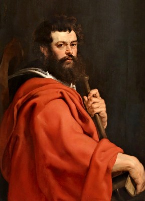 ※ 이 작품은 후기 바로크 회화에서 나타나는 렘브란트 특유의 명암 대비와 심리적 사실주의를 보여준다. 작가는 사도를 영웅적 인물로 이상화하지 않고, 세월과 고뇌가 새겨진 인간의 얼굴로 제시한다. 빛은 외부에서 쏟아지는 계시가 아니라, 어둠 속에서 조용히 떠오르는 내면의 집중을 형성한다. 이 성화에서 신앙은 기적의 순간이 아니라 긴 여정 끝에 다다른 성찰의 자리로 표현되며, 순교로 기억되는 사도는 여기서 고요한 기도의 사람으로 재해석된다.