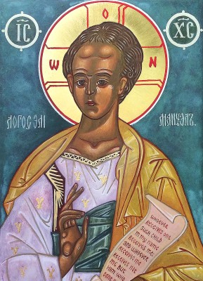 ※ 이 작품은 20–21세기 현대에 제작되었으나, 비잔틴 이콘 전통의 형식을 지속적으로 계승하는 시기의 특징을 반영한다. 작가는 어린 그리스도의 형상을 선택하면서도 전통적 도상과 상징 체계를 유지함으로써, 시간 속에 드러난 인간성과 영원한 신성이 분리되지 않음을 드러내고자 하였다. 이러한 표현은 신앙을 과거의 사건에 머무는 것이 아니라, 현재 안에서 계속해서 현존하는 말씀과의 관계로 이해하도록 이끈다.